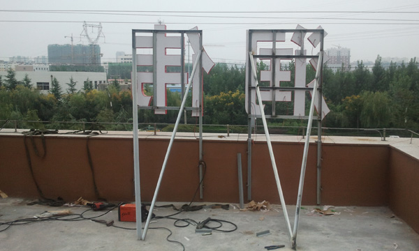 濰坊創(chuàng)視廣告公司——濰坊專業(yè)LED亮化、發(fā)光字制作公司%#為濰坊潤偉恒大置業(yè)制作樓頂發(fā)光字施工現(xiàn)場!